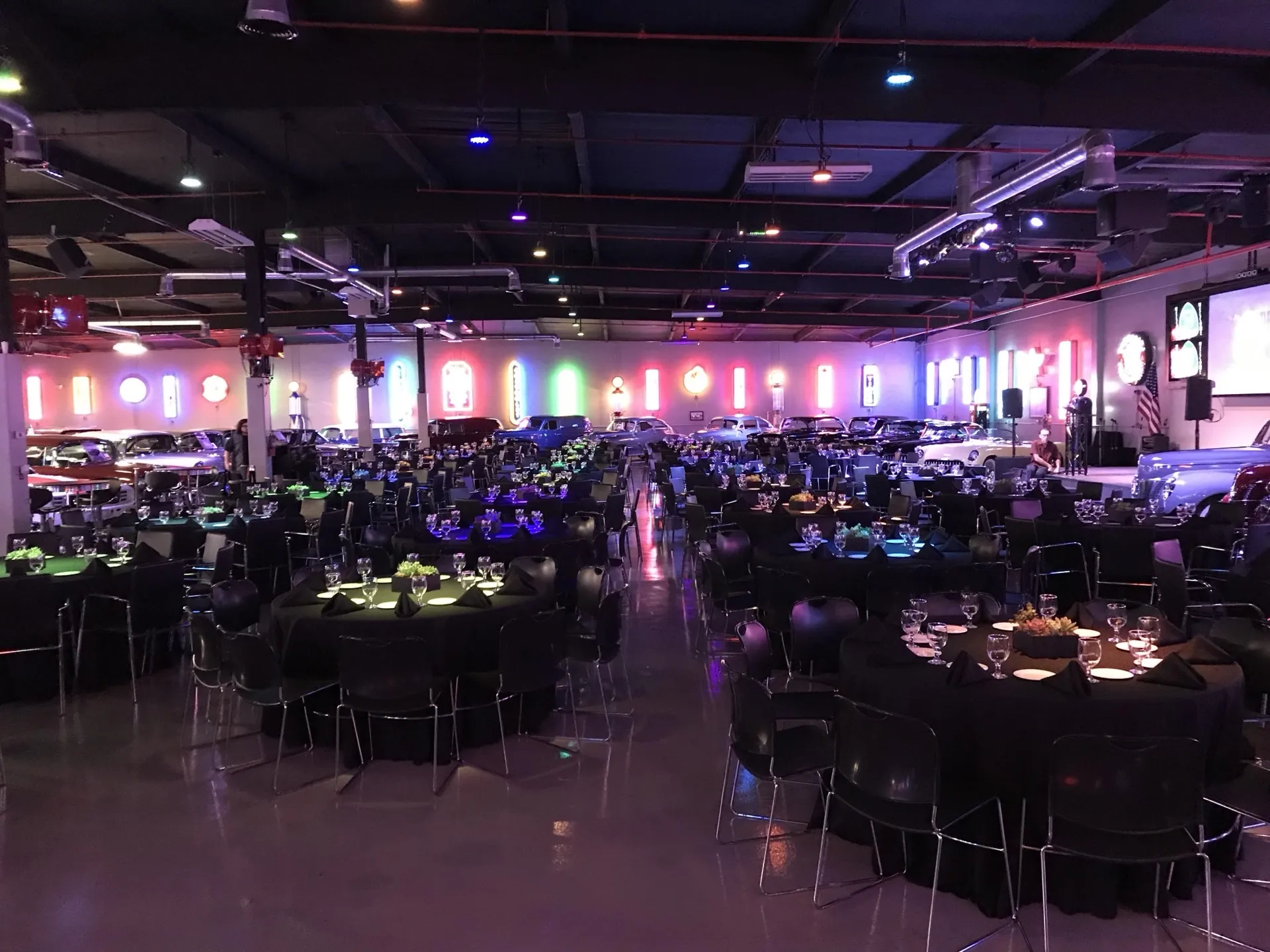 Skip the awkward small talk. In a standard ballroom, you have to work to build energy. At Highway 39, the energy is built-in. The car collection provides an immediate shared experience that gets guests mingling from the moment they arrive.